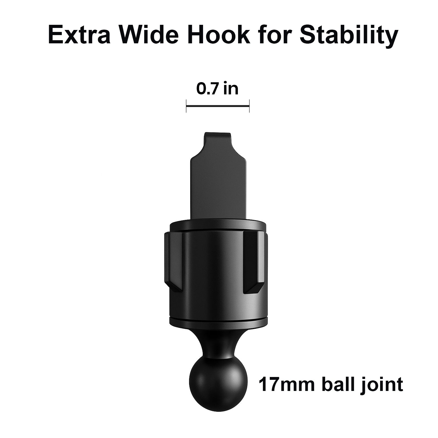 Featuring triple locking points and an extra-wide 0.7-inch hook, it delivers a firm, shake-free grip on your car’s air vent. The extendable body tightens securely with a simple twist, ensuring your phone holder stays fixed during every turn or bump. Its universal 17mm ball joint design seamlessly fits most car mounts, making it a perfect replacement base or upgrade. Whether you’re navigating, streaming music, or taking calls, this clip keeps your device steady and your focus on the road.